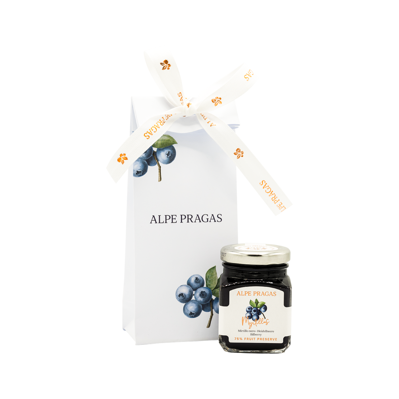 Composta di frutta Mirtillo nero - fatta di mirtilli neri freschi di raccolta selvatica. Il mirtillo (Vaccinium myrtillus) è un genere vegetale della famiglia delle ericacee (Ericaceae) con circa 100-150 specie. La specie più comune utilizzata da Alpe Pragas è il mirtillo selvatico "Vaccinium myrtillus". I frutti contengono molto carotene, vitamina B6, vitamina C e magnesio. A causa degli antociani che contengono colorano la bocca e i denti blu quando sono consumati. Gli antociani sono noti anche per le loro proprietà antiossidanti e antinfiammatorie.