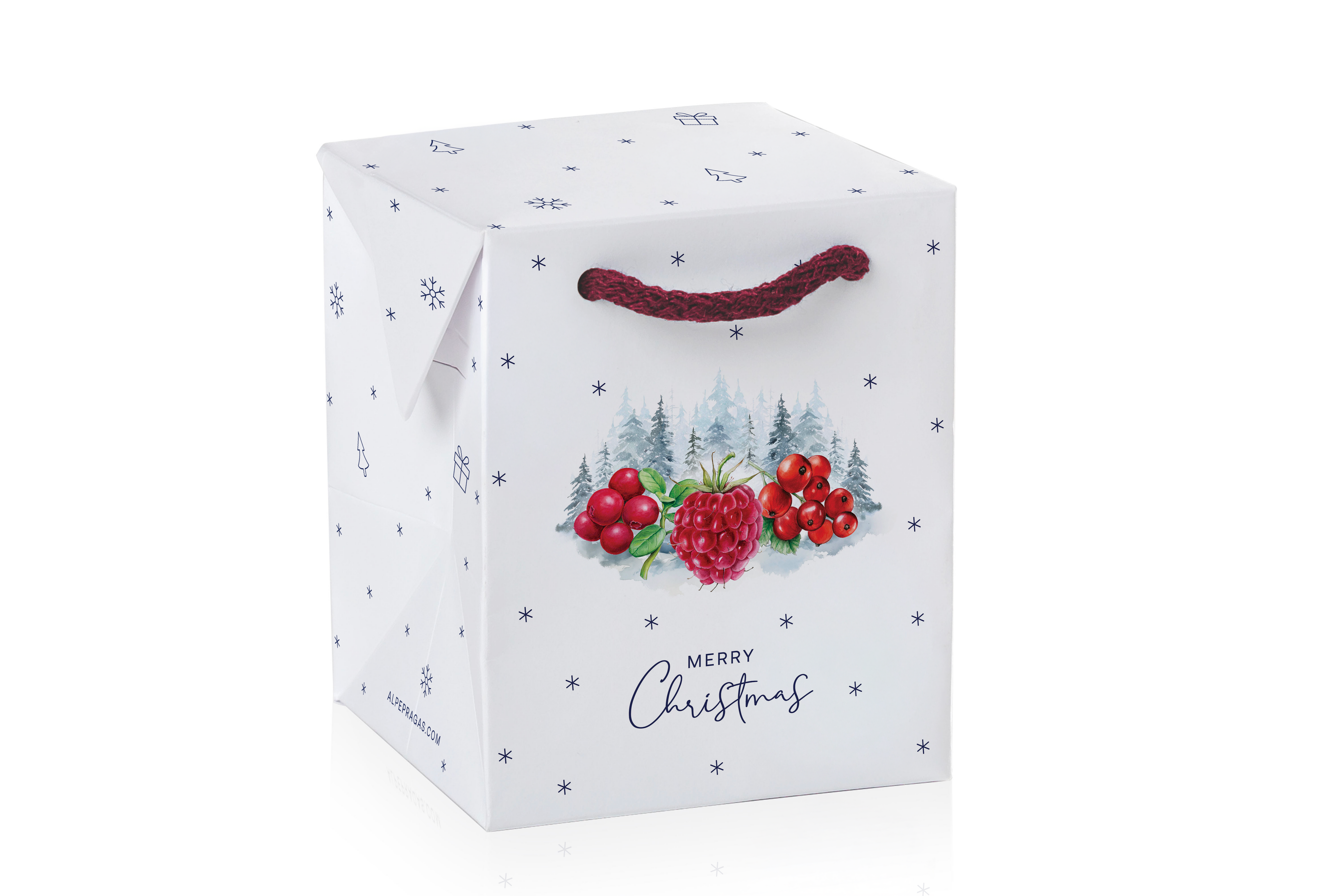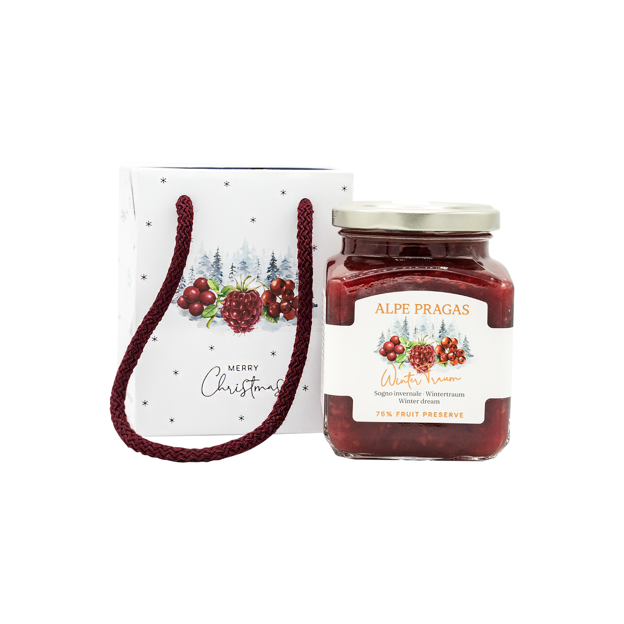 Questa confezione regalo per Natale con una composta di frutta al gusto Sogno Invernale è un pensiero gustoso.