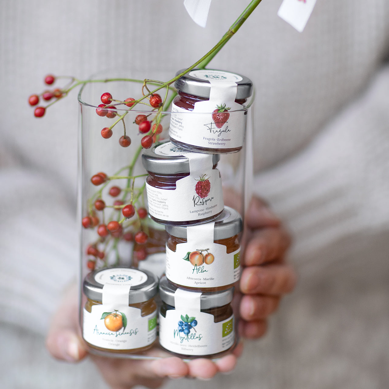 Aggiorna disponibilitàQuesta confezione regalo contiene 4 composte di frutta biologiche da 30g.