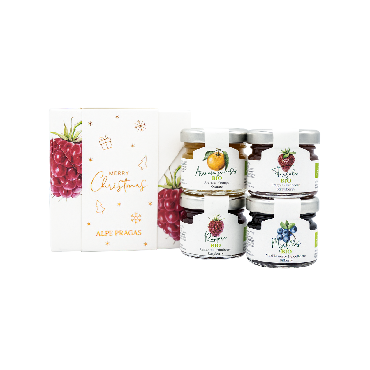 Cartone regalo natale con 4 composte di frutta biologiche 30g
