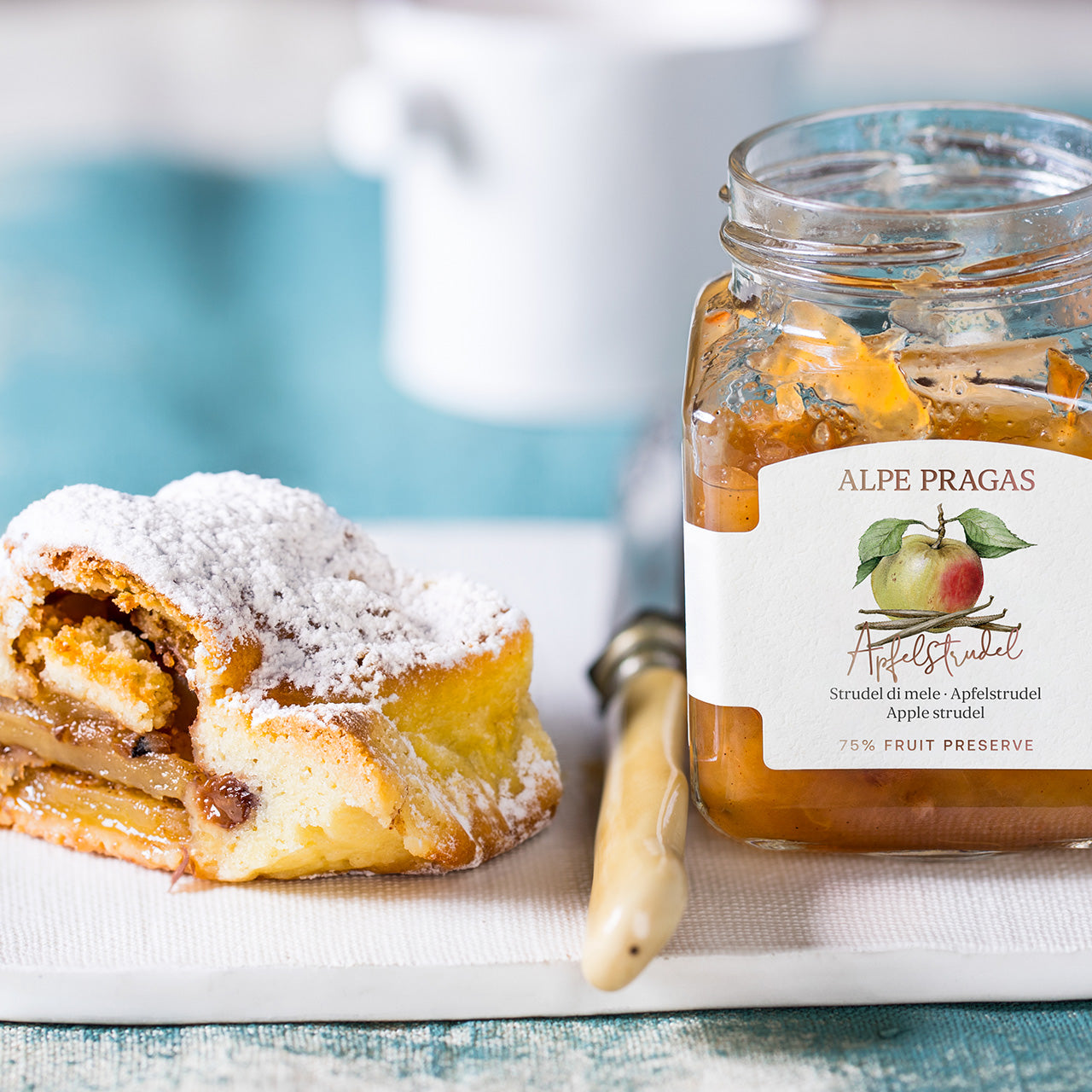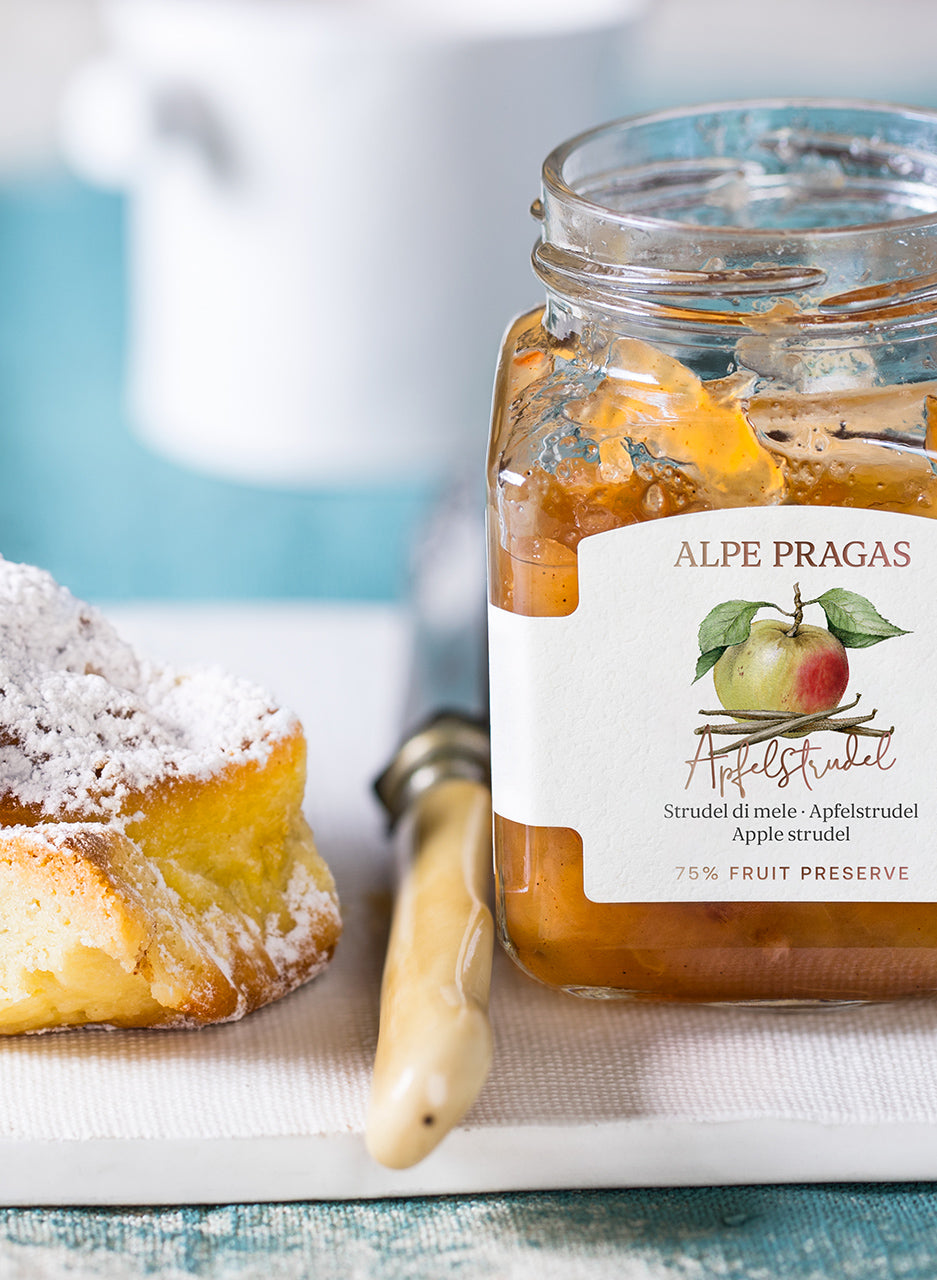 Composta di frutta allo strudel di mele - Da mele aromatiche, raffinate con spezie tipiche. Un pezzo di tradizione altoatesina, delizioso per raffinare dolci, muesli o come dessert.