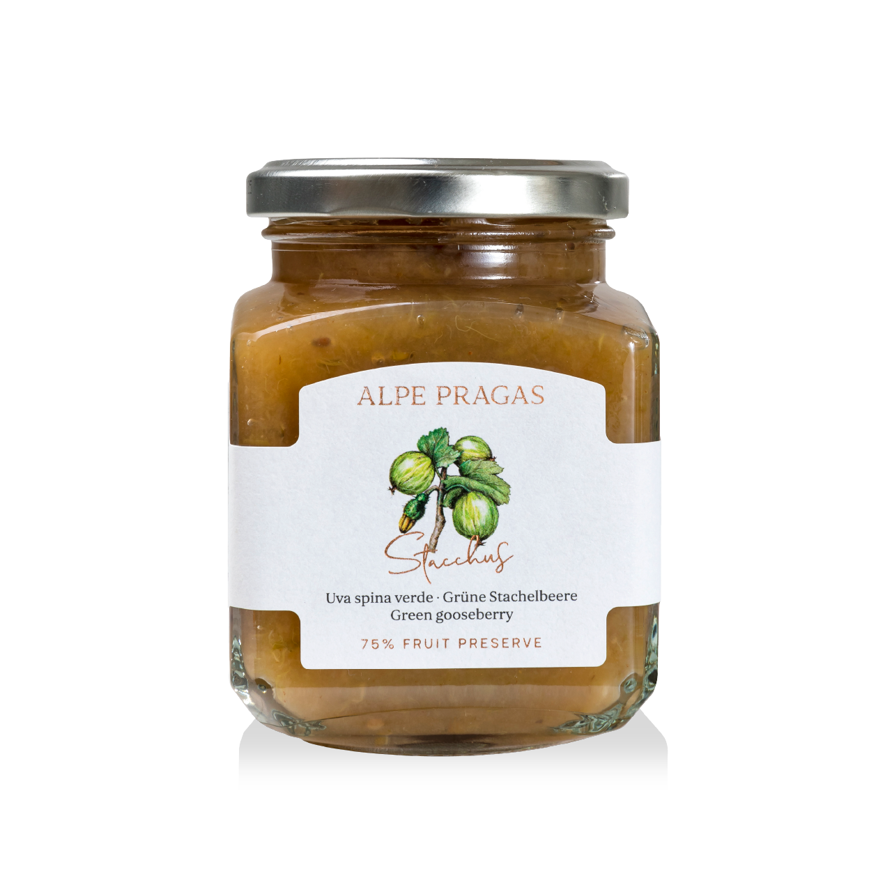 Ingredienti - Uva spina verde (75%), zucchero, succo di limone, gelificante: pectine (da mela)